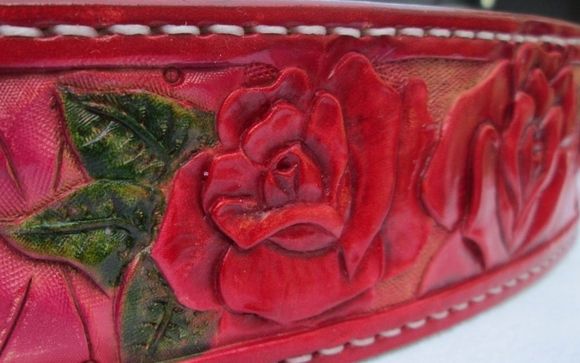 Custom Leather Collar Roses Leather Collar Custom Tooled